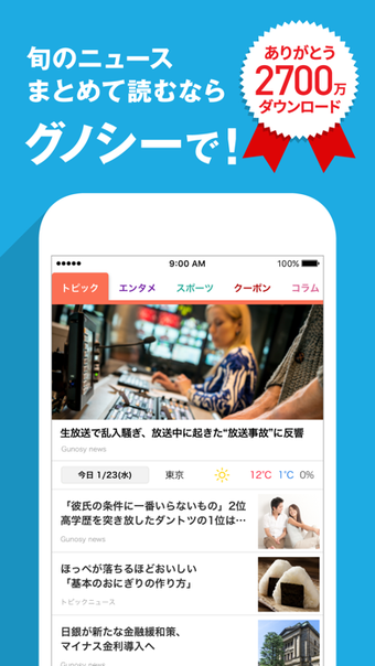 Gunosyは、ギリシャ語で“知識”を意味する「Gnosis」に「u(you)」をはさんだ造語で、「あなたに知恵を届ける」という意味を持つ、ニュースサービスの無料アプリです。自分の関心がある分野のニュースサービスを複数購読しているけれど、複数のニュースソースを管理するのがめんどうだと感じている人や、関心の高いニュースだけをまとめて読みたい人におすすめです。